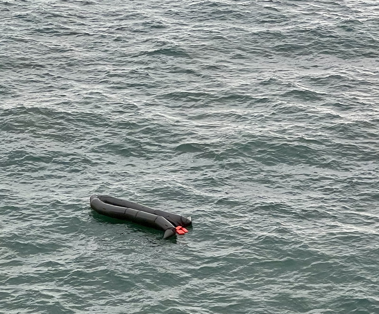 Auf der Nordsee trieb ein Schlauchboot. Um sicherzustellen, dass keine weiteren Personen an Bord des Schlauchbootes sind, wird die Prima, immerhin 300 Meter lang und 37 Meter breit, so langsam und sorgfältig an das Schlauchboot ranbugsiert, dass man mit Sicherheit feststellen konnte, das es ohne Besatzung auf der See trieb.